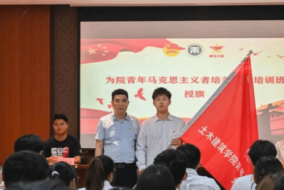 学院党委书记段国强为青马班授旗并宣布青马班正式开班。
