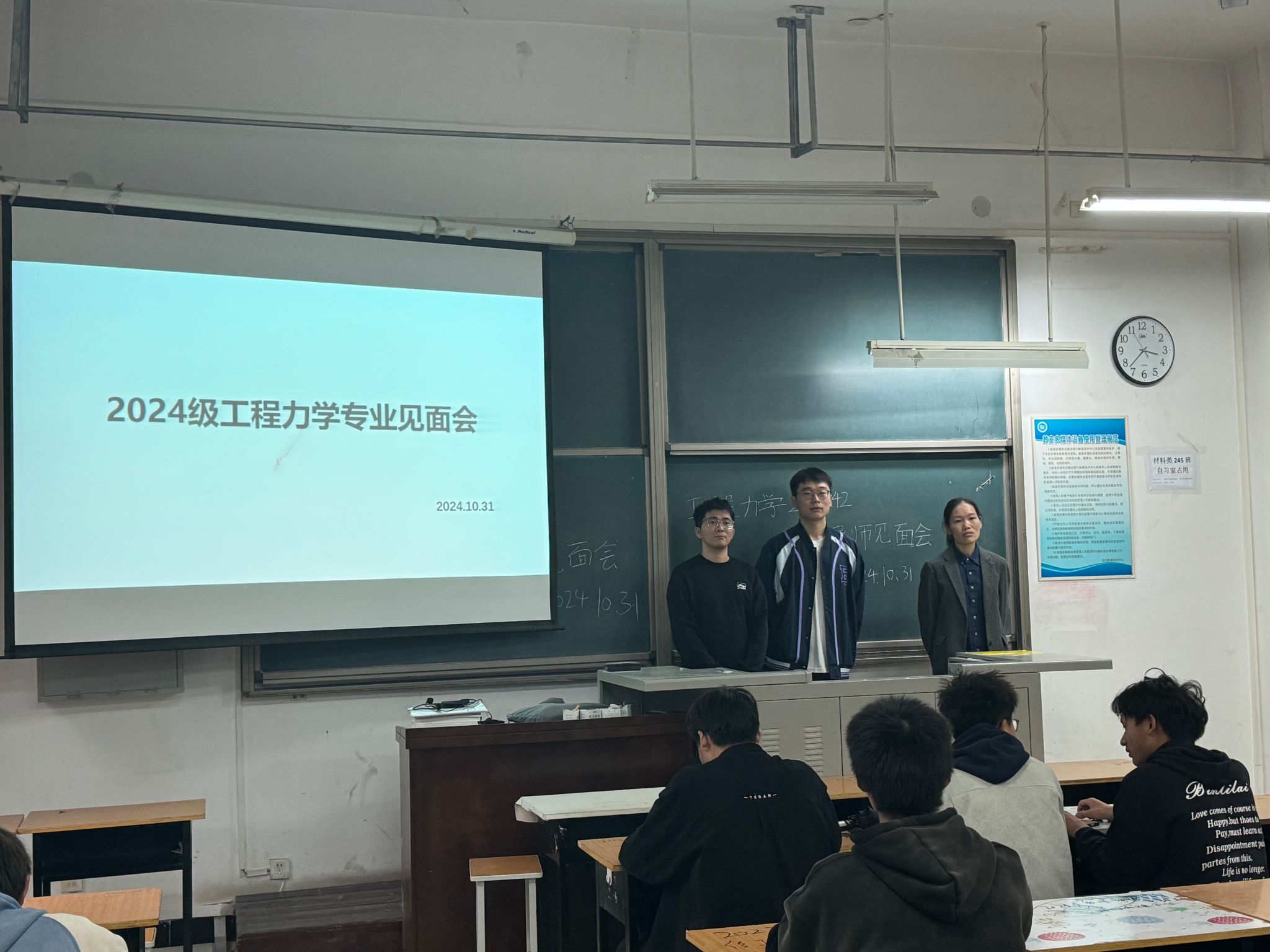 学业导师和学生们在进行简单的自我介绍后,便开始了专业介绍和行业前瞻分享,结合学科特点、专业培养方案和就业方向,向新生们展示了专业的魅力和趣味。着重强调了通识课的基础性和专业课的重要性。学业导师针对学生关心的问题,进行了详细的回答。