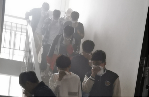 消防疏散演练在乾园10号学生公寓进行。首先教员梅霖进行人员分组、演练流程和注意事项说明。本次疏散演练分点烟饼组、火灾扑救组、疏散组、专业消防组和医护组共五组。演练流程是点烟饼组通过点燃烟饼模拟发生火灾,收到火灾报告后,学院立即组织火灾扑救组进行灭火,在灭火失败后立即组织疏散组进行楼内人员疏散,人员疏散完毕后,专业消防组赶到现场并进楼灭火。活动注意事项包括要求同学们湿毛巾捂鼻,沿楼梯间靠墙侧下楼,有序撤离,避免因拥挤受伤。教员讲述结束后,开始了模拟火灾演练。楼梯间浓烟起,有同学报告失火,学院立即组织灭火,在报告灭火失败后,学院立即拉响警报,组织人员疏散,同学们按要求有序进行疏散。医护组看到模拟受伤同学出楼后,立即进行救治。待全部人员疏散完成后,专业消防队员赶到并从消防通道进楼进行灭火。疏散演练结束后,教员梅霖对整个疏散过程进行总结,教员郭远申给同学们讲述消防、地震、交通事故等防灾减灾知识和技能。