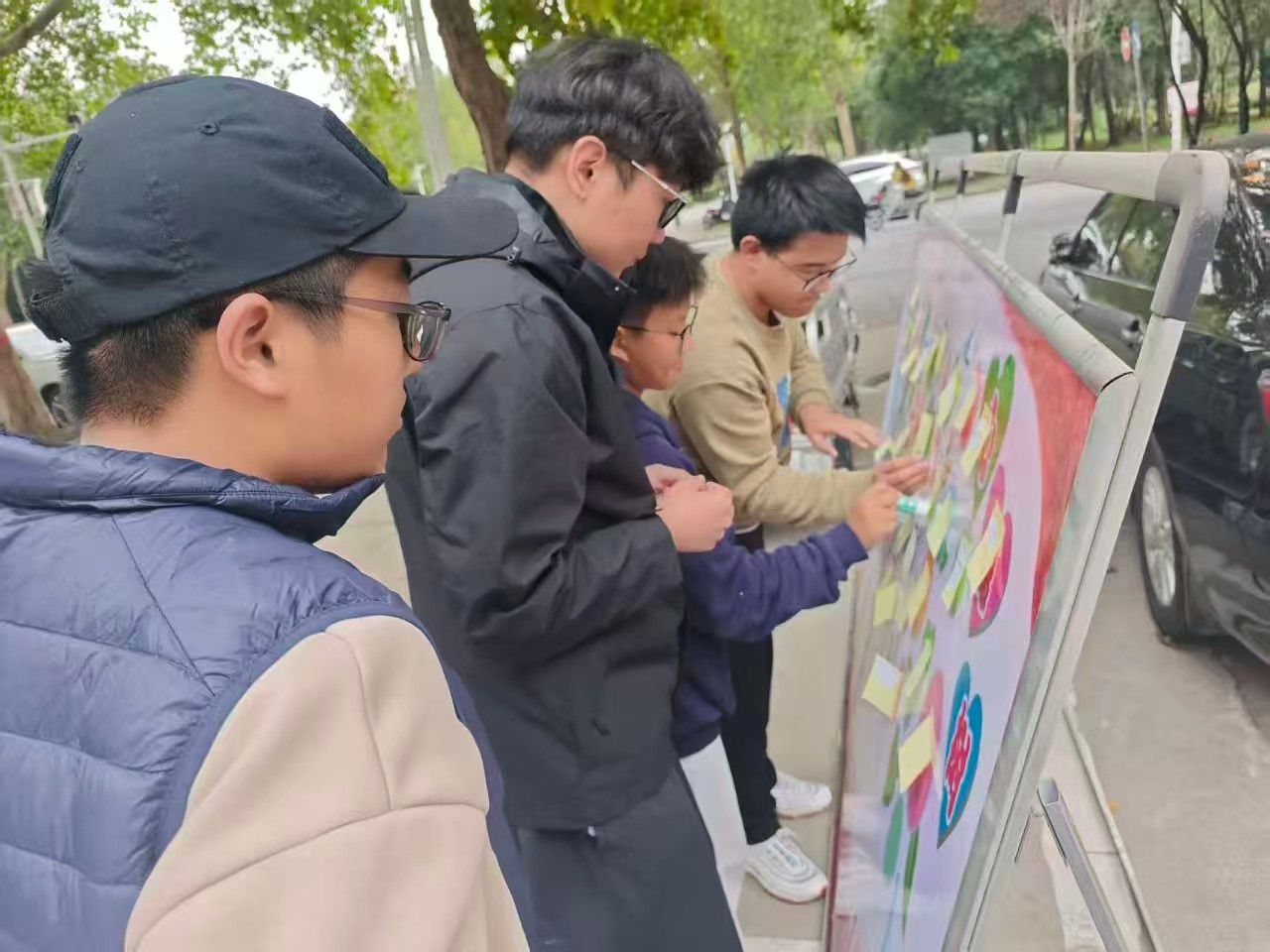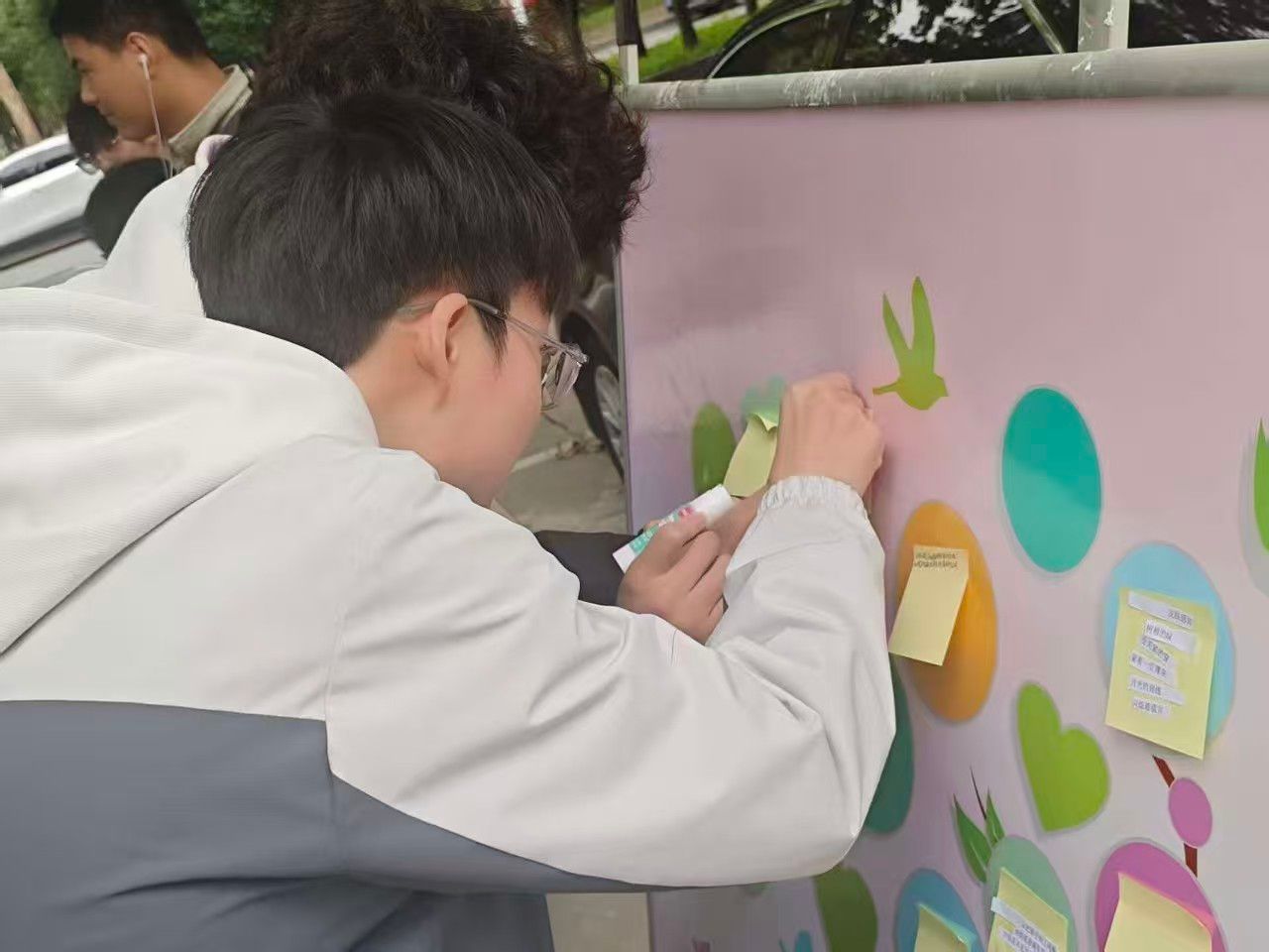 心灵墙前,同学们驻足、提笔,笔尖在便签纸上轻轻游走。有同学写下对远方亲人的思念,字句里满是牵挂;有同学倾诉成长的困惑,字迹间藏着迷茫与期待;还有同学定格与挚友的温暖瞬间,言语中满是笑意。这些简短的文字,早已超越情感的简单记录。它们是此刻心绪与过往记忆的温柔对话,是当下感悟与旧日时光的悄然重逢。每一张便签都像一颗小小的星辰,既承载着对未来的憧憬,也饱含着对自己的期许。