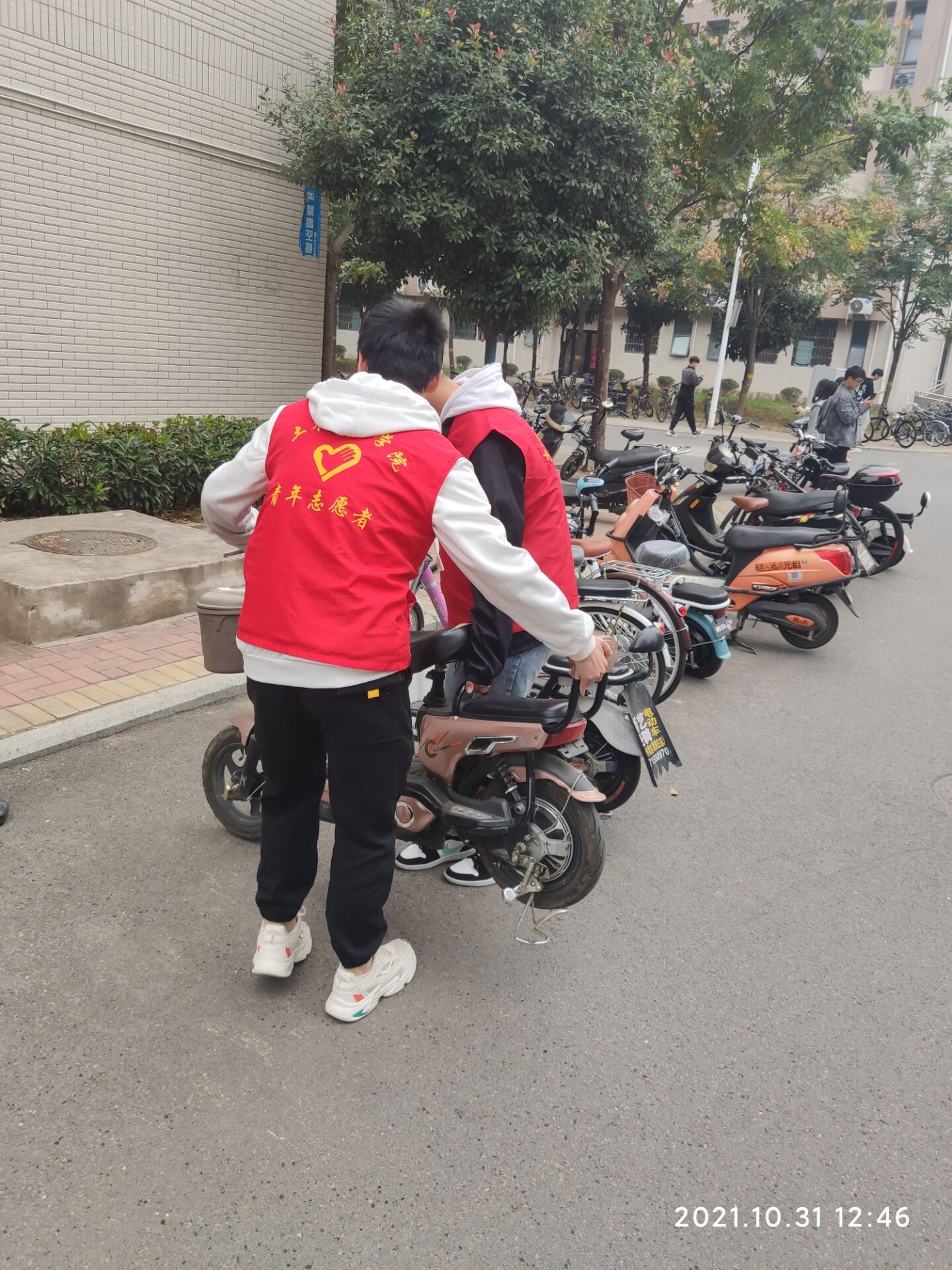 同学们积极响应,踊跃参加,兴高采烈的在“文明是快乐的源泉”宣传标语上写下自己的名字。本次活动分为8各小组,活动伊始,各负责人合理分配了各值班人员的值班地点及工作任务,活动过程中,值班人员正确引导同学们遵守校园交通规则,文明规范将车辆停放在台子上,并倡导同学们注意公共卫生,为创建校园文明贡献自己的一份力量。