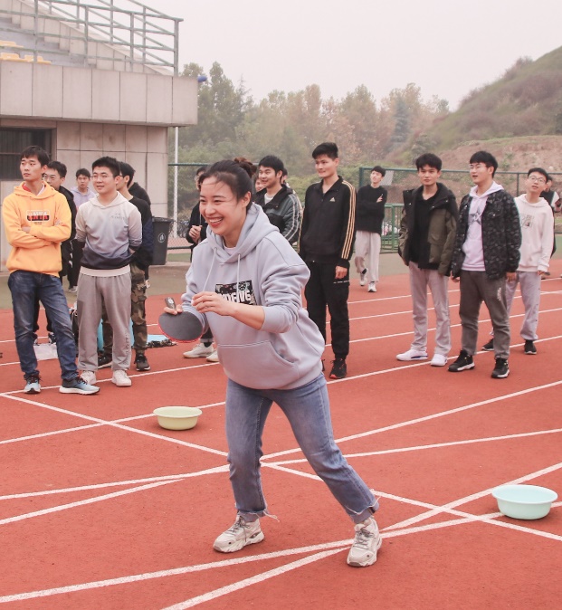 上午八点,来自土木工程学院的参赛师生们纷纷到达活动赛场。赛场上,每一组队伍都斗志倍增、气势如虹、精神十足。各队队员们团结协作、顽强拼搏,不放过一分一秒的成绩;裁判之间密切配合、协同工作,努力给同学们一个安全、公平、合理的赛场;周围的老师和同学也在给参赛的同学们加油。这些项目不仅是团队合作精神的良好体现,而且兼顾趣味性和互动性,受到了同学们的欢迎与喜爱。在精彩的比赛中,最值得一看的是蚂蚁搬家,它既是参与队伍最多的项目,也是用时最长,快乐与笑声最多的项目。获胜者的欢呼声此起彼伏,加油呐喊声从不间断,整个比赛过程始终充满了欢乐的笑声,气氛之和谐、比赛之激烈,尽在不言中。深秋的早晨虽然有些寒意,可同学们热情似火,生机勃勃,活力无限,让静谧的秋天有了春天的生机。