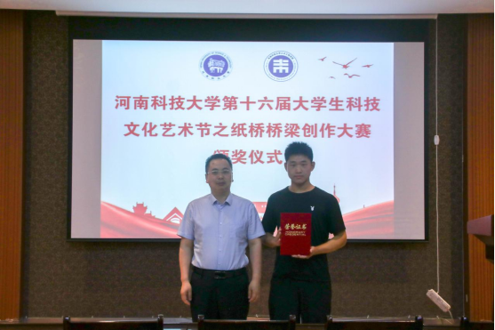 本次大赛的主题是“喜迎二十大、永远跟党走、奋进新征程”,大赛面向学校全日制在校学生举行,大赛不限专业,不需要具备专业基础,每支参赛团队由3人组成,最终共有来自土木工程学院、软件学院等十多个学院的50多支参赛团队报名参赛。大赛坚持“公开、公平、公正”的原则,经过初赛的激烈角逐,30支团队进入到决赛。决赛现场邀请了土木工程学院党委副书记张献文老师、学院副院长马建军老师、土木工程系副主任朱俊锋老师、土木工程系青年教师王超圣老师和学院团委副书记王晶老师担任大赛评委,负责竞赛成绩评定。决赛中,每支参赛团队需要在规定的一分钟内阐述本队桥梁作品的设计理念以及设计思路,并进行承载能力测试,加载过程最多分5次完成。大赛按照桥梁设计理念得分、美观性得分、承载能力得分的综合成绩进行排名。最终评出一等奖一名、二等奖三名、三等奖八名,并由各位评委老师为获奖选手颁发荣誉证书及奖品。