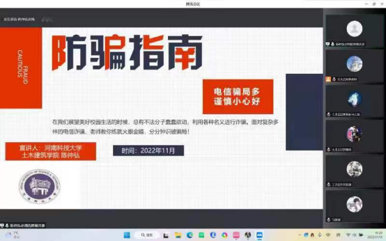 这次线上会议充分展现了老师们对22级新生的美好期望,希望大家都能爱国爱校,充分了解学校和学院学生管理、评优评先等的相关规定,并警惕大家预防电信诈骗,认真践行行为规范,保持身心健康,成就更好的自己,为学院、学校、国家的发展贡献自己的力量。