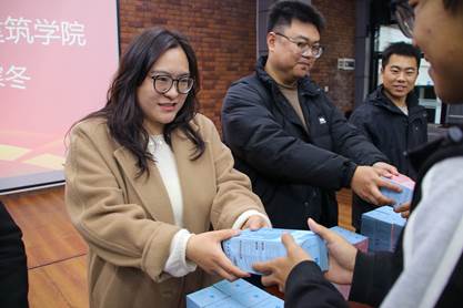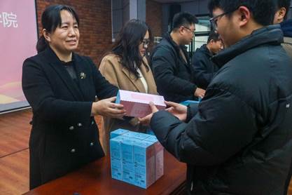活动开始,贺自豪老师发表暖冬演讲。他的话语温情而有力,既传递出学院对同学们的深切牵挂,也鼓舞大家发扬互助友爱的精神,凝聚起共建温暖校园的合力,为此次行动注入了满满的精神动力。随后,陈洁书记、各位老师亲手将暖冬礼包递到同学们手中。一份份礼物,承载的不仅是实际的帮助,更是学院的陪伴与支持。这份温暖缓解了学子们的生活压力,也让他们在求学路上倍感鼓舞、勇毅前行。