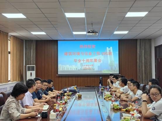 段国强书记首先对校友们十周年重返母校表示热烈欢迎,同时向他们介绍了学校、学院、建环专业十年来的发展情况,希望他们有空常回家看看,在今后一如既往地关注支持母校和学院的发展。张献文副书记向校友们介绍了学院的学生工作情况和工会工作情况,殷切地希望他们继续与母校和学院加强沟通联系,相互支持,实现共赢。专业教师们也对校友们重返母校表示了热烈的欢迎。建环091班毕业生们分别介绍了各自毕业后的工作情况、现工作单位、岗位情况和所取得的成就等。同时,也对学校、学院和专业近十年的发展倍感欣慰和自豪,对学院的发展和取得的荣誉表示祝贺,坚定地表示在今后一定会继续支持母校、学院和专业发展。最后,学院领导和专业教师对校友们近十年的工作成就表示了祝贺。