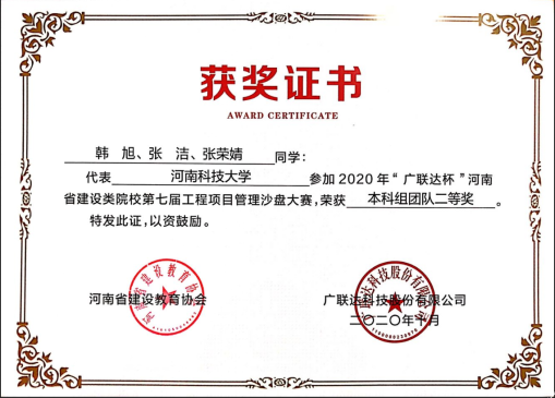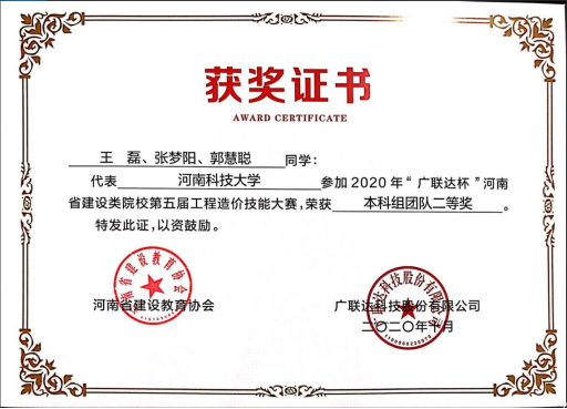 9月19日,土木工程学院BIM协会成员积极参加2020年“广联达杯”河南省建设类院校第七届工程项目管理沙盘二等奖在第七届工程造价技能大赛。大赛自2008-2019年连续举办了十二届,截止2019年共有来自全国30多个省市及自治区近950所院校参赛,占全国所有开设建筑类相关专业院校总数的73%,参赛师生总人数累计突破17万人。大赛设置了三大赛项:数字建筑BIM一体化工程管理赛项、数字建筑BIM一体化土建施工赛项以及数字建筑虚实一体综合模拟,旨在培养职业素质高、创新能力强、专业技能扎实的应用型专业综合性人才,大赛结合行业发展及趋势,聚焦土建施工类和建设工程管理类为核心的建筑类专业群,以岗位群综合能力要求为培养目标,打破传统单技能的培养,提炼学生岗位群核心能力。土木工程学院参赛团队喜获2个二等奖 。