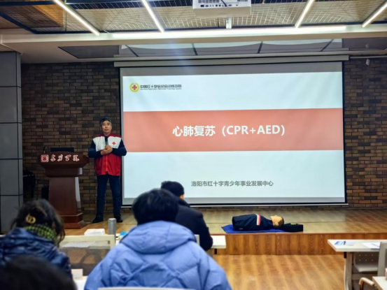 为进一步普及应急救护常识,大力弘扬“人道、博爱、奉献”的红十字精神。2023年12月27日,由洛阳市红十字会和同人漫画 红十字会主办的2023年教职工应急救护技能培训在同人漫画 三楼学术报告厅成功举办。校红十字会秘书长、同人漫画 党委书记段国强主持会议,特邀洛阳市红十字会青少年事业发展中心主任赵海峡担任主讲,来自全校各学院/书院的44名教师接受培训。