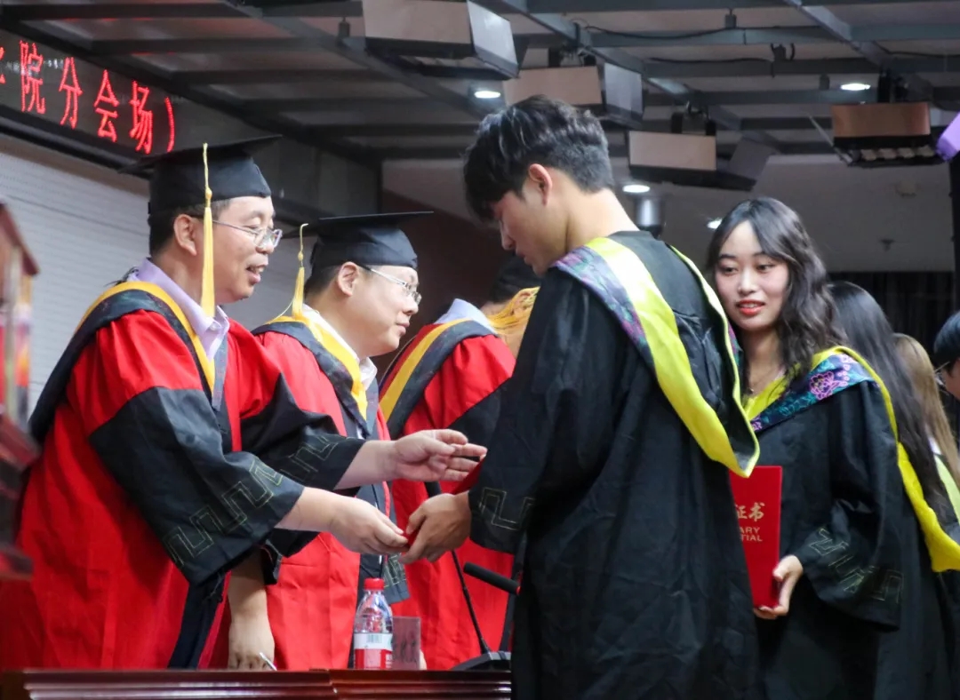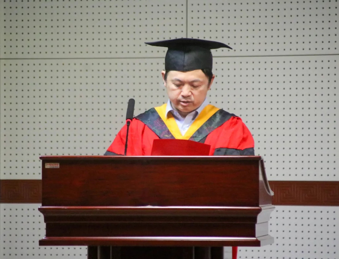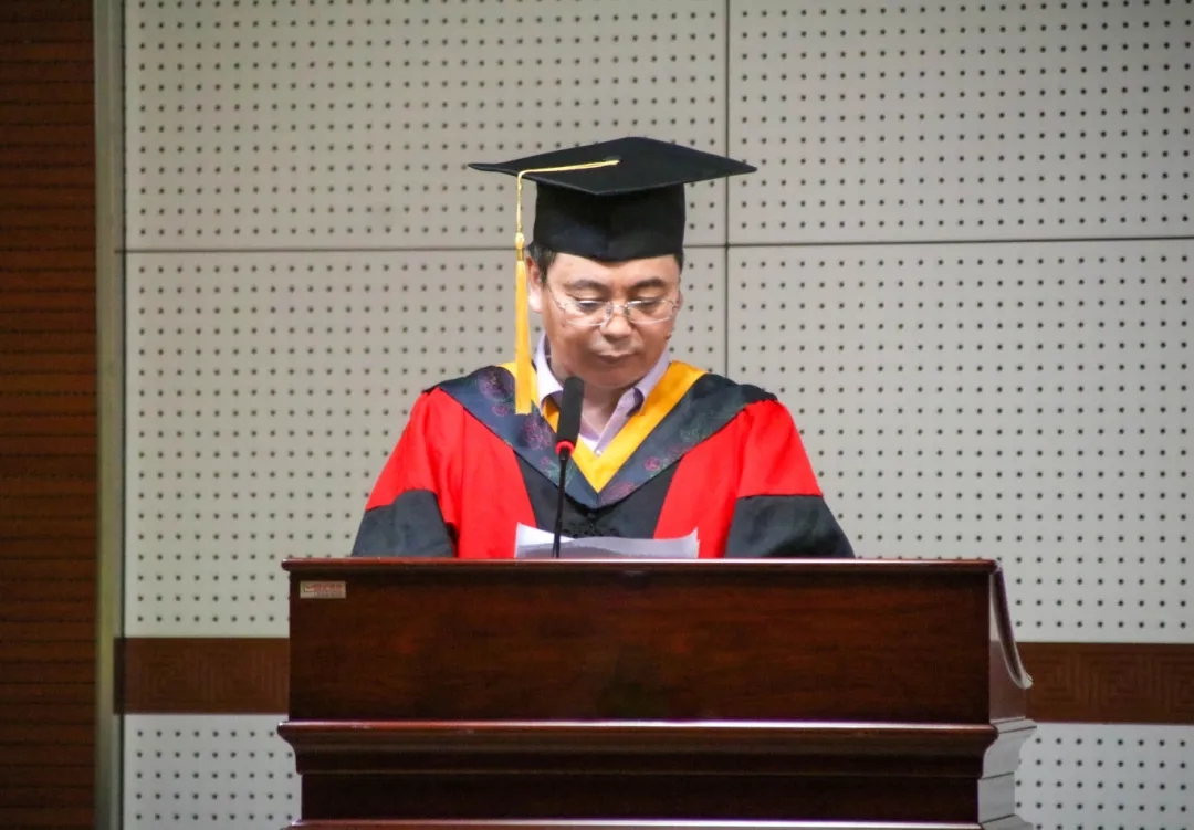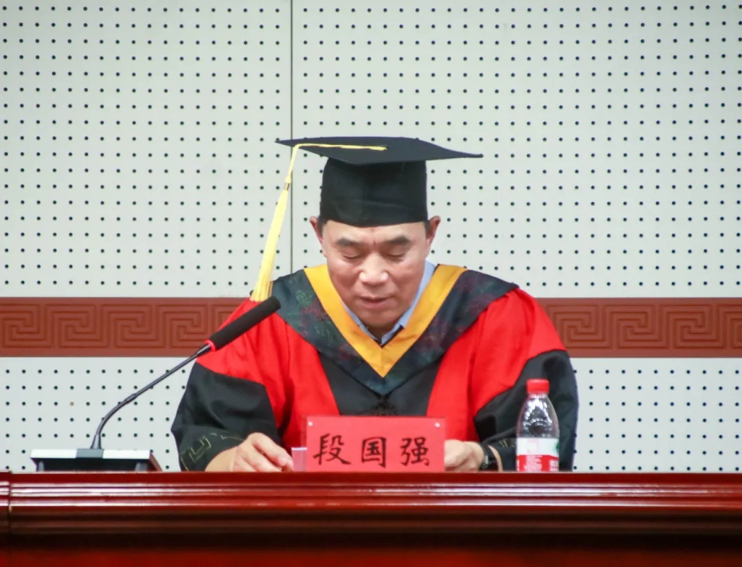 典礼最后,段国强书记讲话。他首先代表全院教职工向2024届全体毕业生同学们表示最热烈的祝贺,并对他们在校期间的表现给予了高度评价。段书记强调,毕业生们是学院的骄傲,也是国家的栋梁之才。他鼓励毕业生们要勇于担当、敢于创新,为实现中华民族伟大复兴的中国梦贡献自己的力量。同时,书记也表达了学院对毕业生们的深切关怀和祝福,希望他们在未来的人生道路上取得更加辉煌的成就。