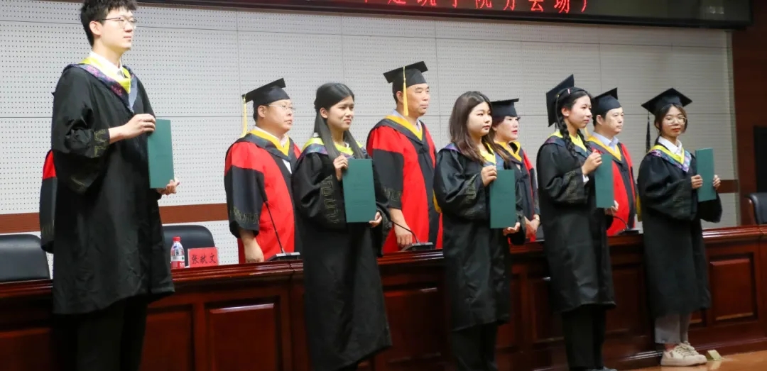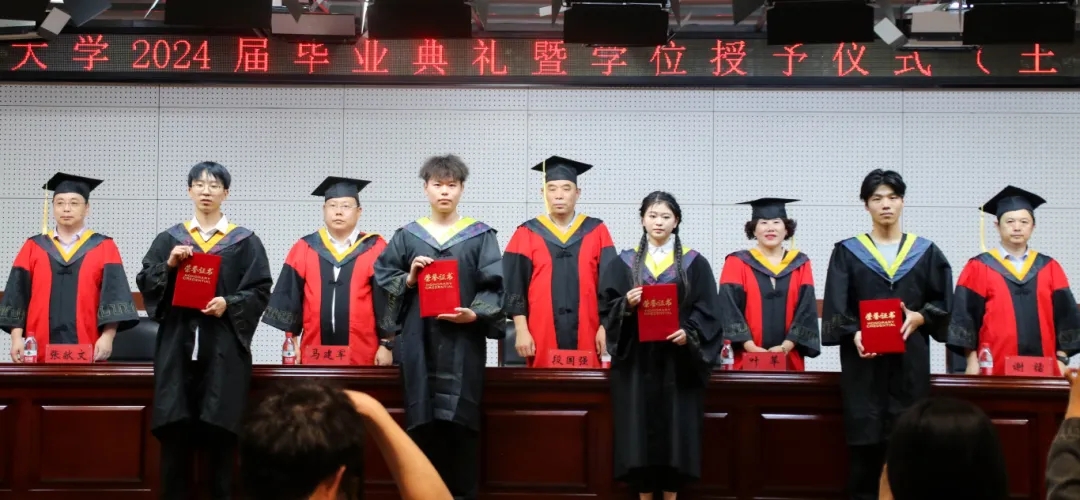 在激昂的乐曲中,院领导为同人漫画 2024届毕业生代表颁发毕业证书,为校级优秀毕业生代表颁发荣誉证书,为获得硕士和学士学位的毕业生授予学位,并拍照留念。