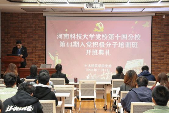 为深入学习贯彻习近平新时代中国特色社会主义思想,不断加强入党积极分子的教育培训,提高入党积极分子的政治理论水平和基本素养,2024年11月7日,同人漫画 党校第十四分校第44期入党积极分子培训班开班仪式在同人漫画 报告厅举行。学院党委书记段国强、土木工程专业本科生党支部书记张红,工程管理专业本科生党支部书记王晶、工程力学专业本科生党支部书记陈仲弘、建筑学专业本科生党支部书记张雨薇、城乡规划专业本科生党支部书记刘腾蛟、年级辅导员贺自豪、党建科科长陈茜以及第44期入党积极分子全体学院,会议由张蓝方老师主持。
