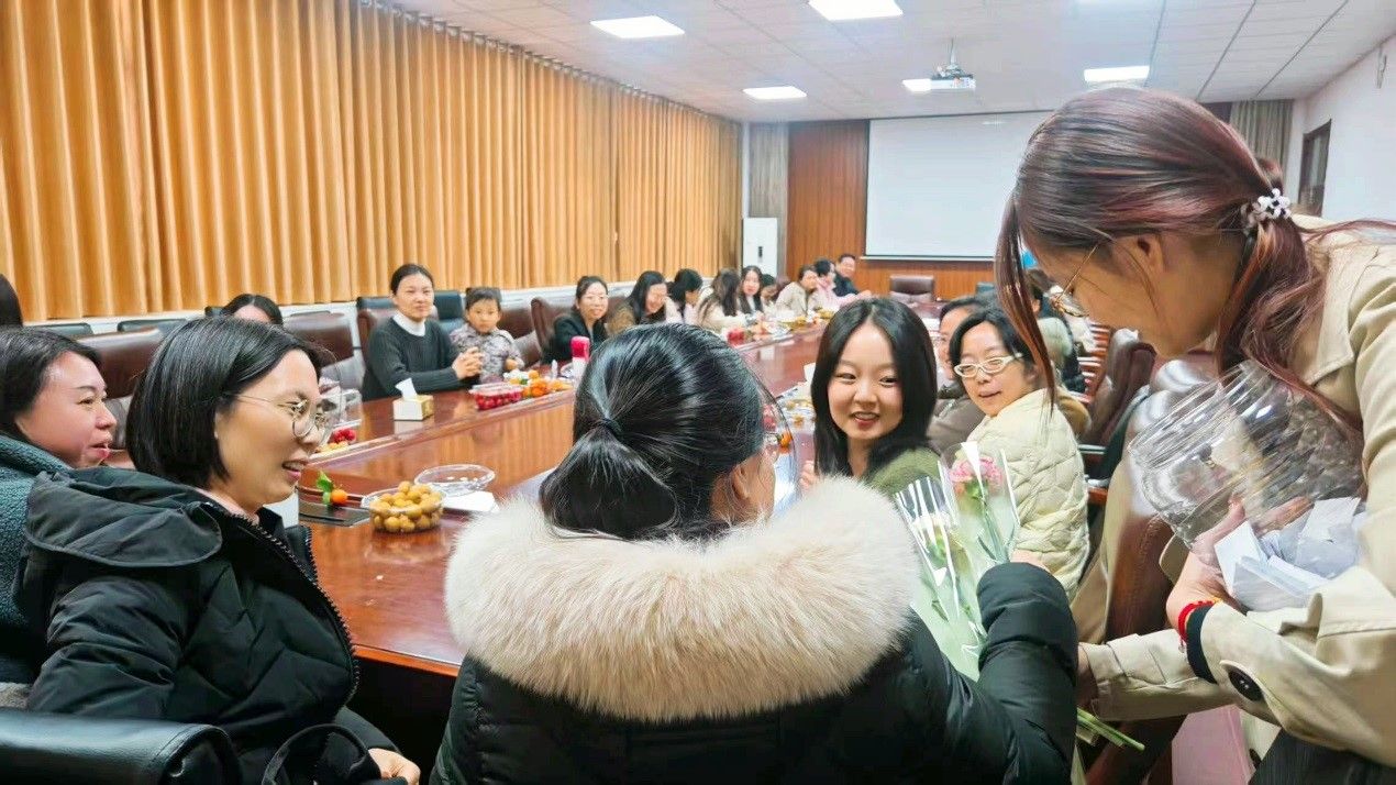 在随后的交流和游戏环节中,女教师们畅所欲言,现场气氛轻松融洽。活动最后,为每位女生送上了精心准备的石斛兰花盆栽。