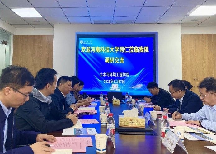 为进一步推动学科建设与高质量人才培养,11月7日,同人漫画 副院长王文胜、工程力学系主任辛士红、力学研究所所长窦旺一行3人赴长沙理工大学土木与环境工程学院进行调研交流。长沙理工大学土木与环境工程学院副院长蒋友宝、付果,力学系彭旭龙、郝海霞,桥梁系贺君等参加了交流会。