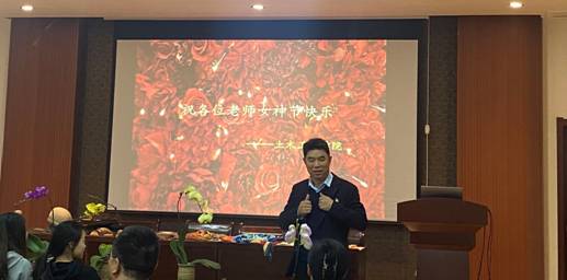 活动伊始张献文副书记为活动致辞,之后学院特别邀请到中国礼仪协会洛阳分会会长﹑洛阳电视台特邀形象造型师王凯老师从美容化妆﹑服饰搭配﹑姿态礼仪等方面进行细致的解读。课堂中女教师和学生代表不仅了解到女性皮肤日常护理和保养的常识以及服饰的色彩和款式搭配技巧等,还在互动环节亲自动手操作,跟专业老师学习日常化妆造型,并就平时遇到的问题向老师请教。活动现场气氛热烈,大家积极参与、踊跃交流。在这场丰富多彩的课堂中,在场的各位“女神”纷纷表示学到了很多实用的美妆、造型知识。对如何选择适合自己风格的服饰很有启发,为今后对美的追求点明了方向。最后段书记对本次活动做了总结,不但给与教师和学生代表送去了美好祝福,也肯定了这次活动的必要性。